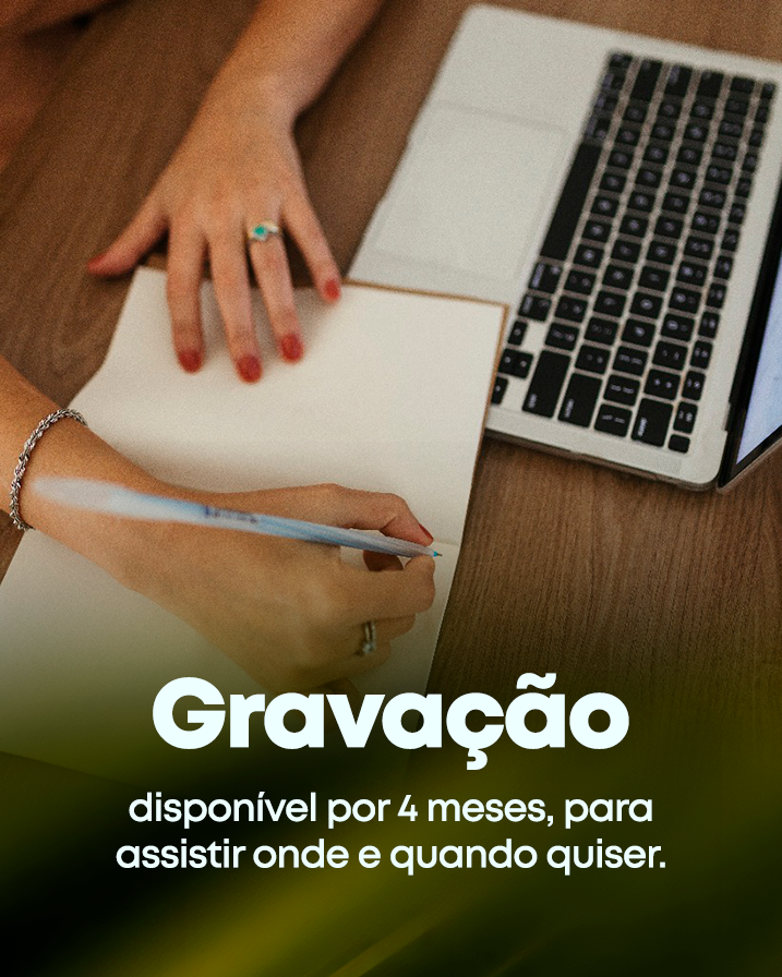 Caso não consiga participar no dia, você poderá adquirir somente a gravação durante o período de vendas dos ingressos, ou no máximo até o dia 28 de novembro.